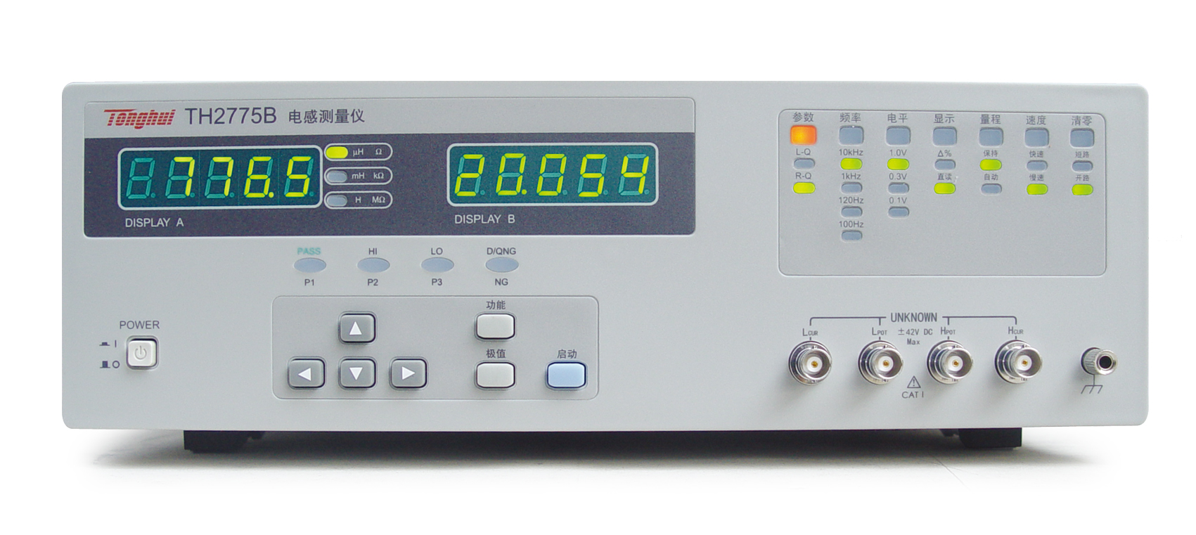 TH2775B電感測試儀簡介■?TH2775B元件參數(shù)測試儀是最新研制的高性能價格比的測量儀器,能自動測量電感量 L、電容量 C、電阻值 R、復(fù)阻抗 Z、品質(zhì)因數(shù) Q 和損耗角正切值 D 等元件參數(shù), TH2775B將強大的功能、優(yōu)越的性能及簡單的操作結(jié)合在一起,既能適應(yīng)生產(chǎn)現(xiàn)場高速測量的需要,又能滿足質(zhì)檢、計量、科研實驗等部門精密檢測的需要。應(yīng)用技術(shù)參數(shù)型號TH2775B測試參數(shù)L,Q, R測試