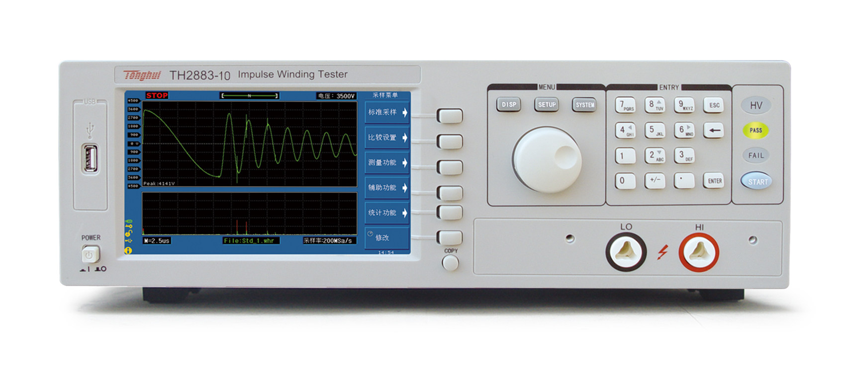 ? 沖電壓,是測(cè)試各種線圈的標(biāo)配產(chǎn)品。TH2883-10具有最高10kV的脈沖 輸出電壓,可測(cè)試更高絕緣耐壓的匝間測(cè)試。