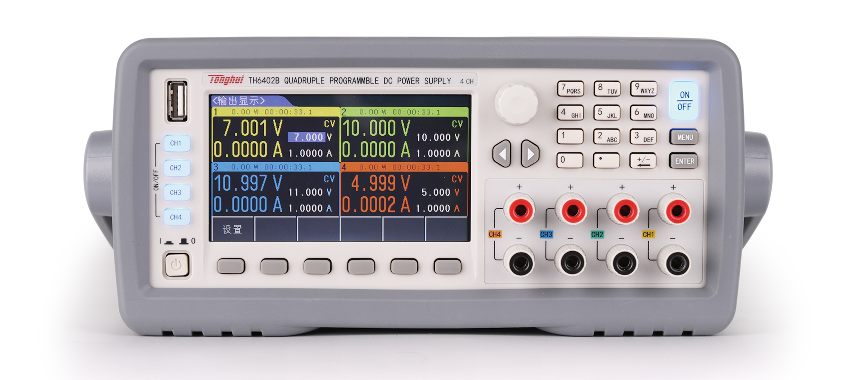 TH6402B 四通道可編程線性直流電源應用■ 研發(fā)和設(shè)計驗證通用測試■ 生產(chǎn)線工作臺常規(guī)測試、維修■ 自動化設(shè)備集成測試■ 太陽能光伏模擬測試■ 新動力汽車模擬測試■ 教學實驗室技術(shù)參數(shù)型號TH6402B額定輸出(0℃-40℃)通道/范圍通道1通道2通道3通道4電壓0-30V0-10V0-5V電流0-3A0-3A0-1A功率90W30W5W負載調(diào)整率±(% 輸出+偏置)電壓≤0.01% + 3