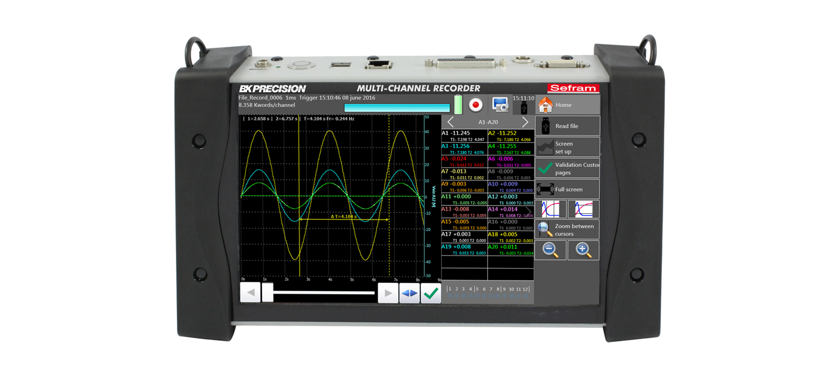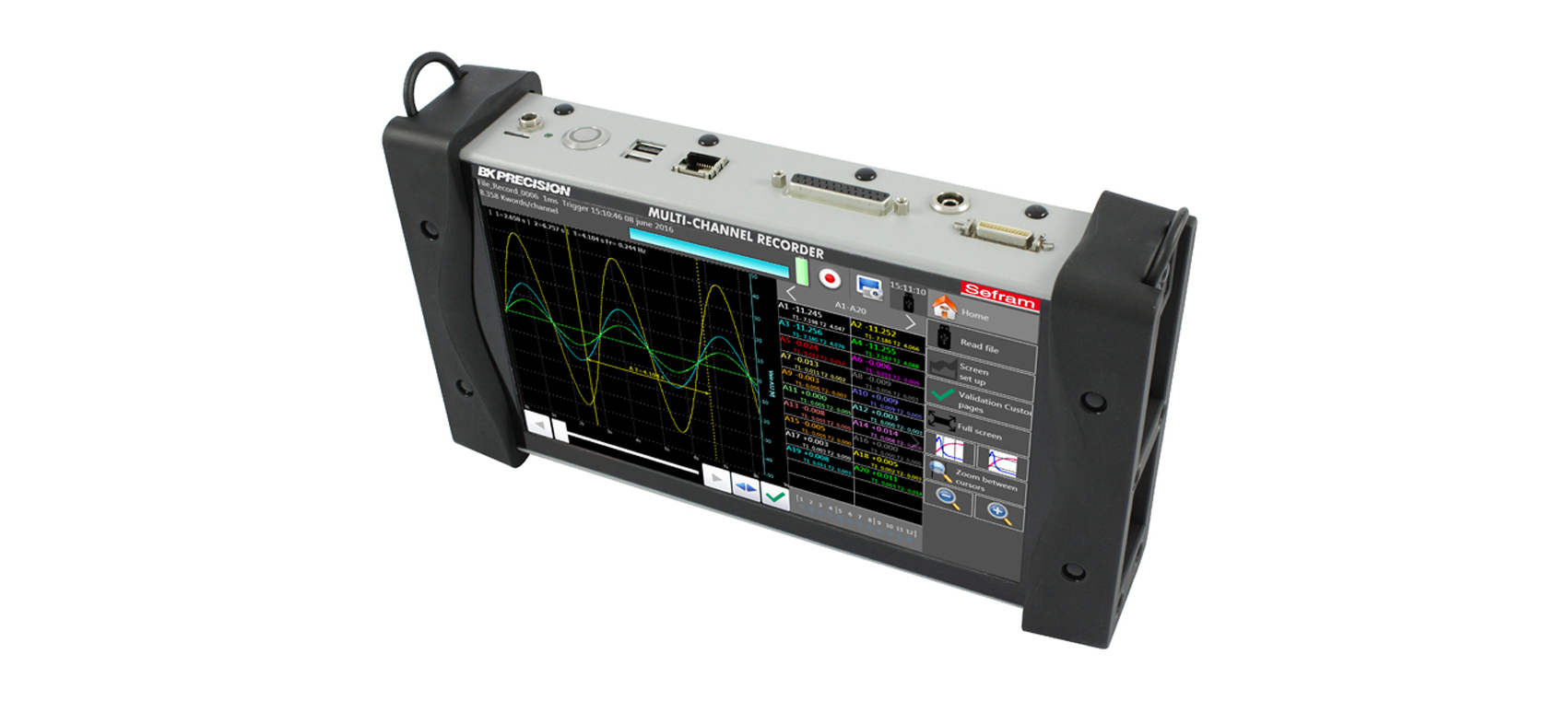 新一代的DAS 220記錄儀旨在測試您在過程中所需要記錄的參數(shù):電壓測試傳感器測試(0-10V),溫度測試(熱電偶,PT100-PT1000),電流測試(選裝分流器)電阻測試,計數(shù),頻率。您可以直觀地觀察測試結果(圖形和數(shù)值)以及在記錄儀內(nèi)部或USB存儲測試結果,您可以在電腦上通過使用免授權的Das Lab軟件來進行數(shù)據(jù)轉移和處理
