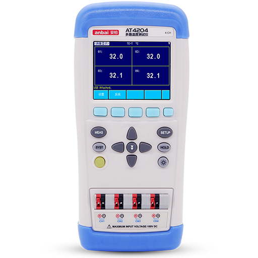 AT4204手持式多路溫度測(cè)試儀采用高性能32位ARM微處理器控制,可同時(shí)對(duì)4路溫度數(shù)據(jù)進(jìn)行采集,上超下超報(bào)警和通訊傳輸,兼容K/N/E/J/T/R/S/B型熱電偶,響應(yīng)速度快,數(shù)據(jù)穩(wěn)定,同時(shí)具備斷偶檢測(cè)功能。超低功耗設(shè)計(jì)和高密度SMD裝配工藝,真彩TFT液晶顯示屏,并具有鍵盤,觸摸屏 雙控制。采用鋰電池供電,USB通訊。中英文操作界面可快速切換。儀器標(biāo)配的數(shù)據(jù)采集軟件為您進(jìn)行數(shù)據(jù)分析提供強(qiáng)有力的支持!