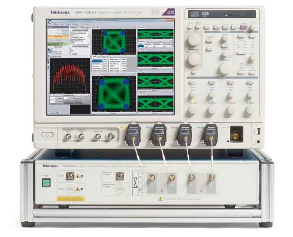 不提供示波器。軟件兼容許多示波器。在訂貨時檢查兼容能力。最低要求包括:每條通道>10?GS/s,每條通道>2.5?GHz帶寬,4通道,LAN連接。