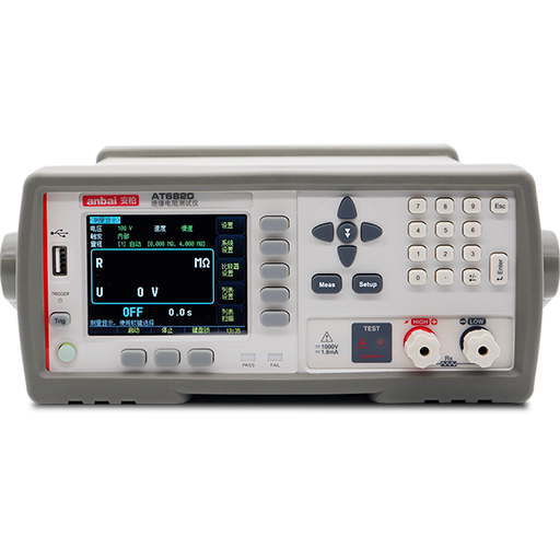 AT6820 絕緣電阻測試儀,采用高性能ARM 微處理器控制的全自動實時檢測的微型臺式儀器。儀器采用全彩的LCD 顯示屏, 全數(shù)字鍵盤,搭配安柏儀器操作系統(tǒng),使顯示更清晰,操作更方便。