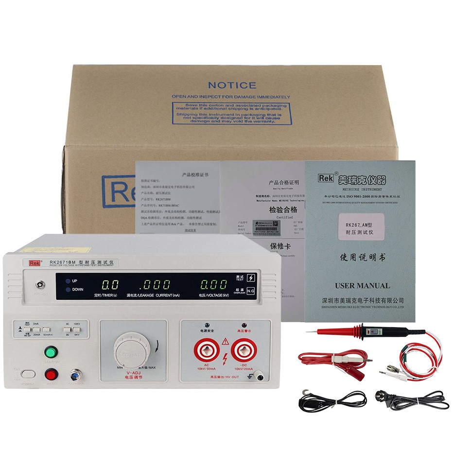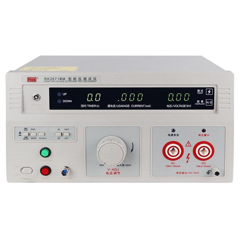 美瑞克RK2671系列耐壓測試儀是測量耐壓強(qiáng)度的儀器,可以直觀、準(zhǔn)確、快速地測試各種被測對象的擊穿電壓、漏電流等電氣安全性能指標(biāo),并可以作為高壓源用來測試元器件和整機(jī)性能。