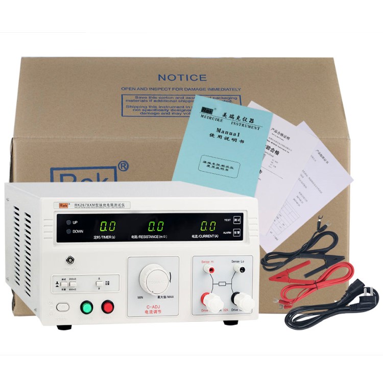 美瑞克RK2678XM接地電阻測試儀是用來測量電氣設(shè)備內(nèi)部的接地電阻,所反映的是電氣設(shè)備的總接地端子之間的(接觸)電阻。適用于測量各種電機、電器、儀器儀表、家用電器等設(shè)備外殼與其接地之間的電阻值。本系列測試儀符合如下標(biāo)準(zhǔn):家用電器類標(biāo)準(zhǔn)(IEC6035、GB4706.1-2001、GB4793.1-2007)、燈具類標(biāo)準(zhǔn)(IEC60598-1-1999、GB7000.1-2000)、信息類標(biāo)準(zhǔn)(GB8898-2001、GB12113.GB4943-2001、IEC60065、IEC60950)等等。