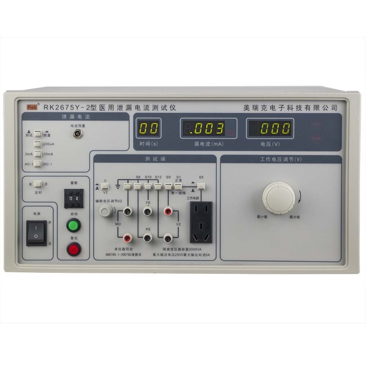 RK2675Y系列醫(yī)用泄漏電流測試儀用于測量醫(yī)用電氣設(shè)備的連續(xù)漏電流和患者輔助電流的檢測試驗設(shè)備。